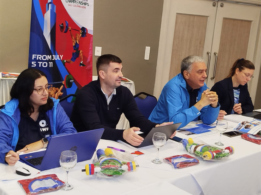 En el encuentro, el grupo de delegados de la IWF liderado por José Carlos Quiñonez, secretario general del organismo mundial y sus compañeros de entidad, Matyas Lancer, gerente de competición, Timea Horvath, secretaría técnica y Andrea Peña Malagón, coordinadora de competencias para el área panamericana, recibieron con beneplácito el informe presentado, hicieron algunos planteamientos y recomendaciones generales dentro de la naturaleza de los parámetros que establece el organismo para esta serie de eventos.
