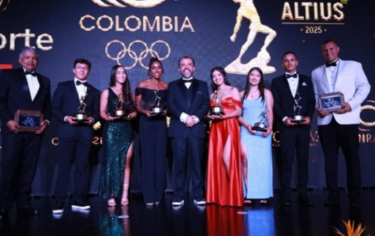 Por: Oficina Asesora de Comunicaciones-I.D.R.D. (El IDRD y el Equipo Bogotá, ganadores en los Premios Altius. Aparecen (izquierda a derecha)...