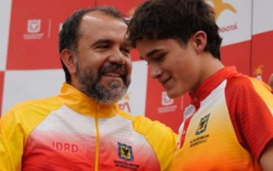 Por: Oficina Asesora de Comunicaciones-I.D.R.D. (El director de IDRD, Daniel García (izquierda) y el joven piloto Sebastián Garzón, consolidando la...