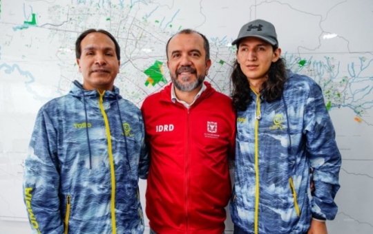 Por: Oficina Asesora de Comunicaciones-I.D.R.D. (El director del IDRD, Daniel García Cañón (cen.) despidió a los jugadores bogotanos Freddy Duvián...